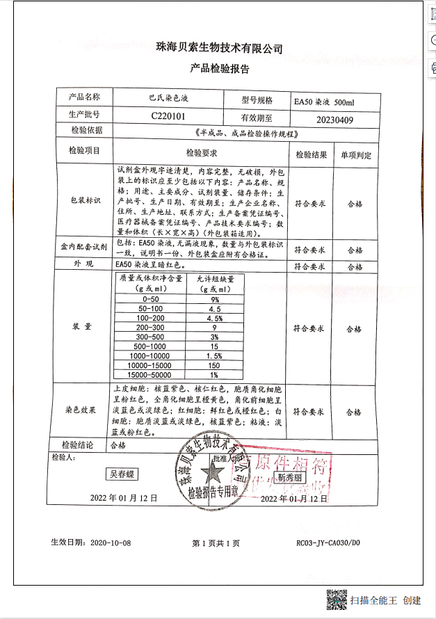 貝索 巴氏染色液 EA-50 500ml BA4033A C220101