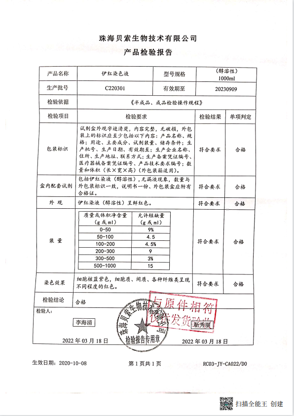 貝索 伊紅染液(醇溶性) 1000ml BA4022 C220301