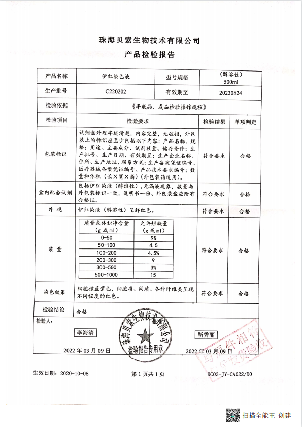 貝索 伊紅染液(醇溶性) 500ml BA4099 C220202