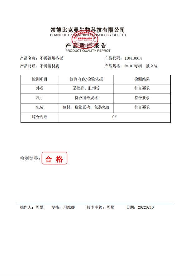 比克曼生物 不銹鋼規(guī)格板 5x10 彎柄 獨立裝 110410014 20220210