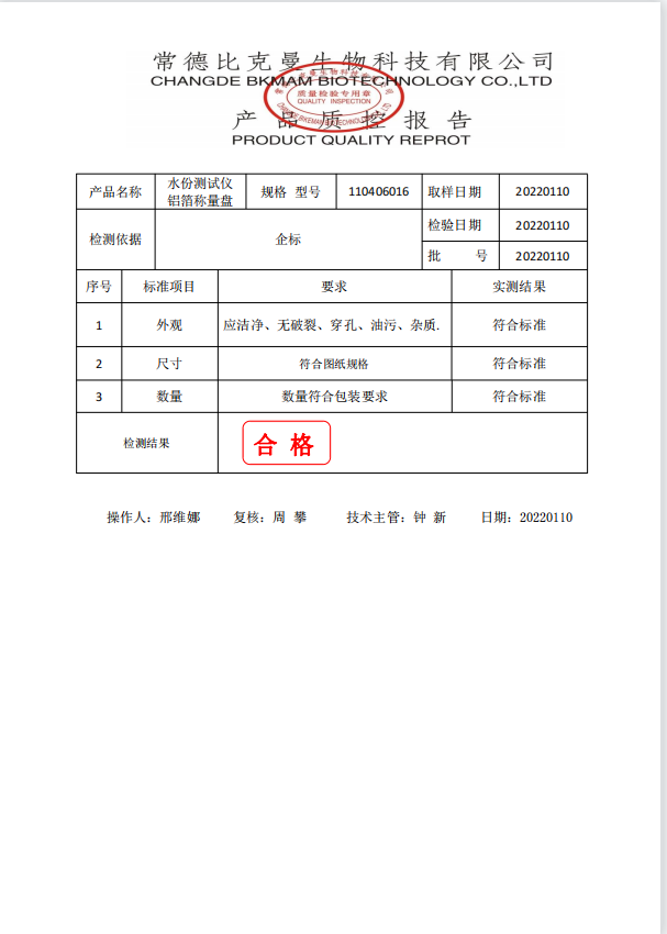 比克曼生物 水份測試儀鋁箔稱量盤 50個盒 110406016 20220110