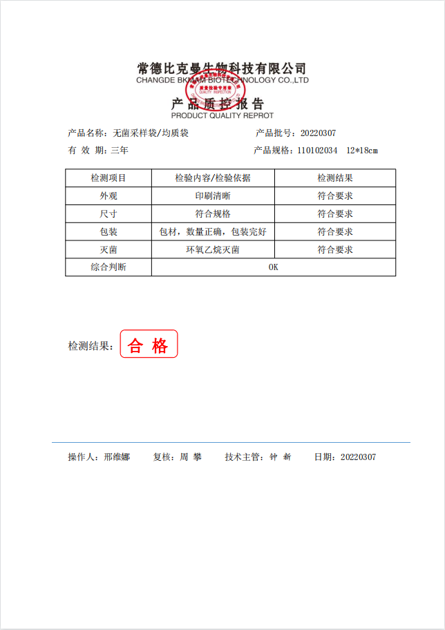 無菌采樣袋 12x18 (有印刷無LOGO帶壓條) 100個裝 110102034 20220307