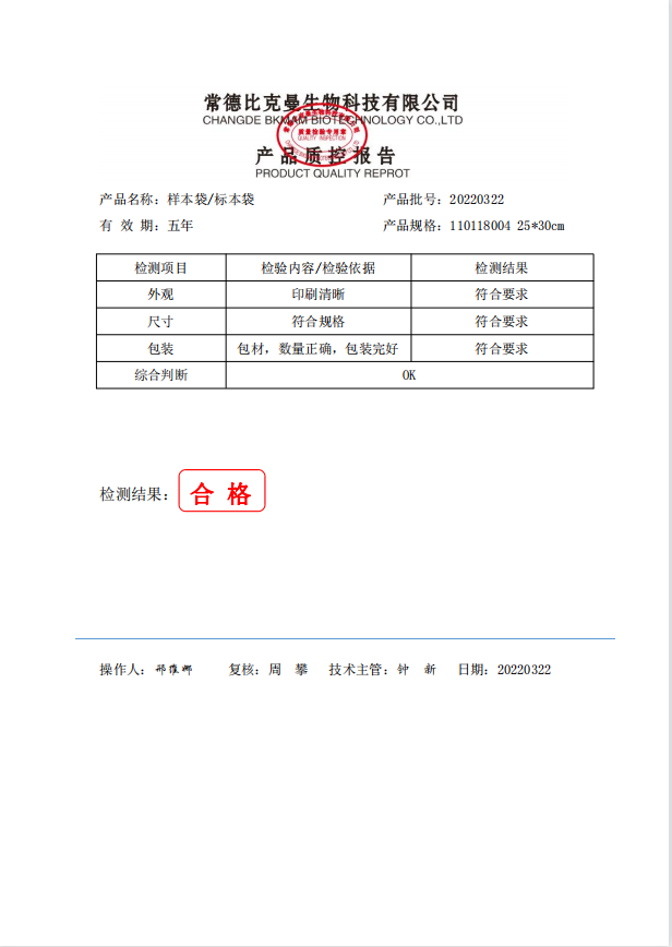 比克曼生物 樣本袋 25x30cm 100個 袋 110118004 20220322