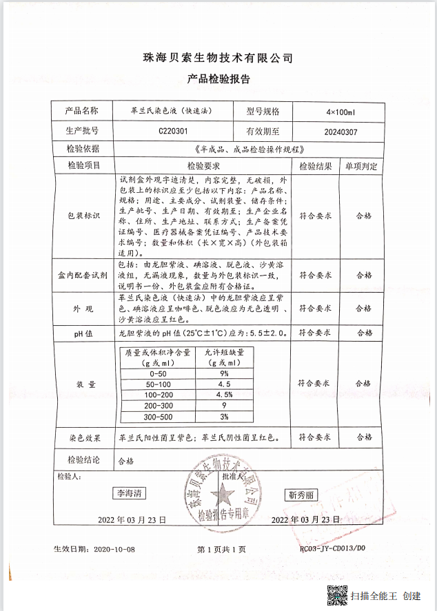 貝索 革蘭氏染色液(快速法) 100ml4盒 C220301