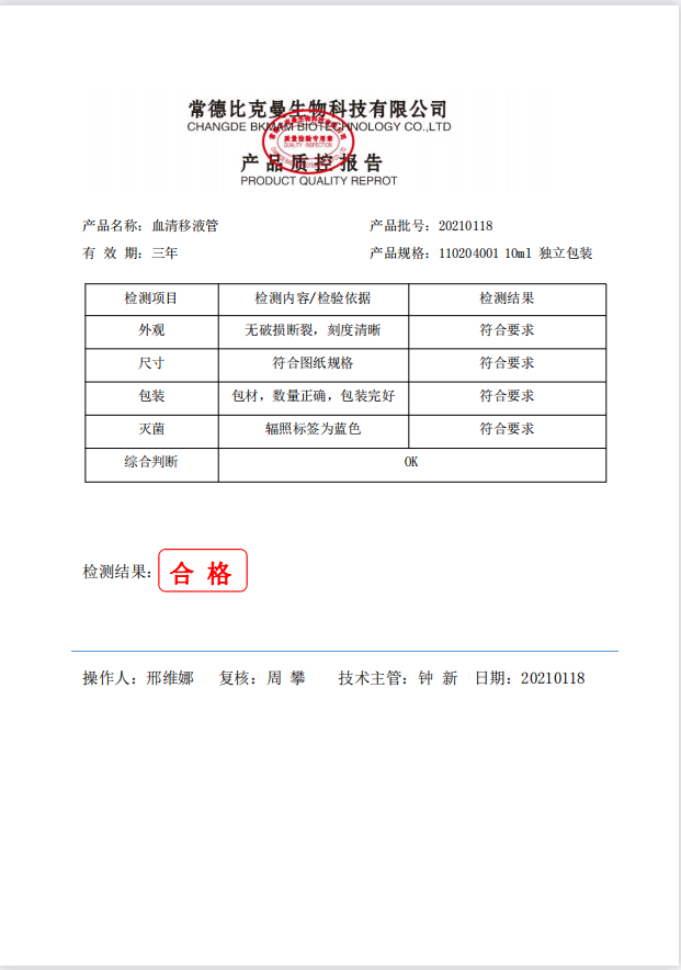 比克曼生物血清移液管 (獨(dú)立裝) 10ml 50支袋 110204001 20210118