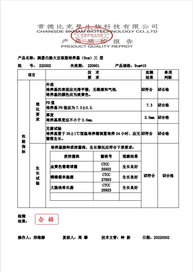 比克曼生物 胰蛋白胨大豆瓊脂(三層包裝) TSA瓊脂平板 9cm 10個袋 110704022 20220302