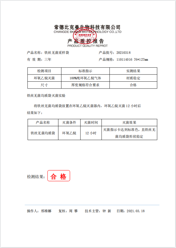 鐵絲無菌采樣袋 76x127 (帶書寫區(qū)域) 100個裝 110114016 20210318