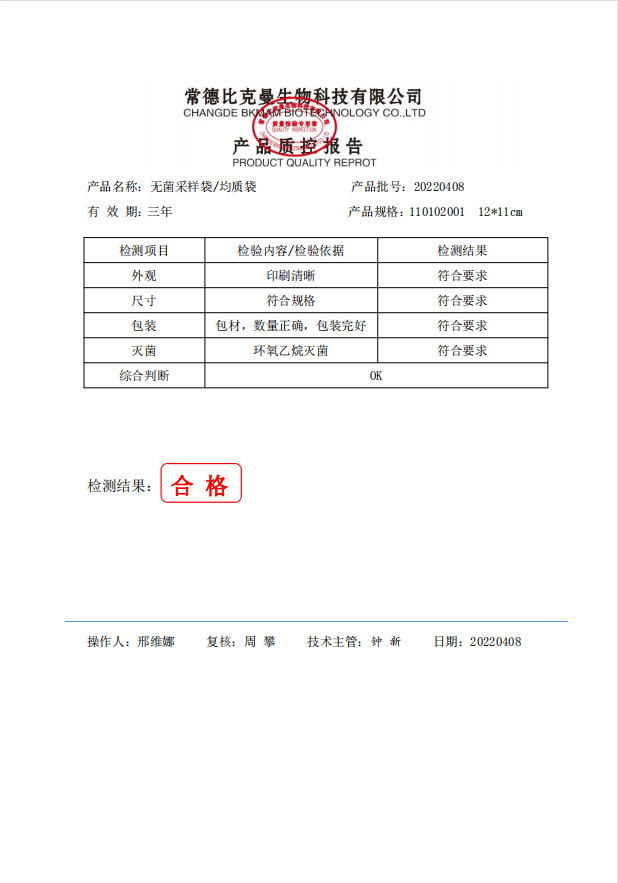 無菌采樣袋 12x11 (帶壓條) 100個(gè)裝 110102001 20220408
