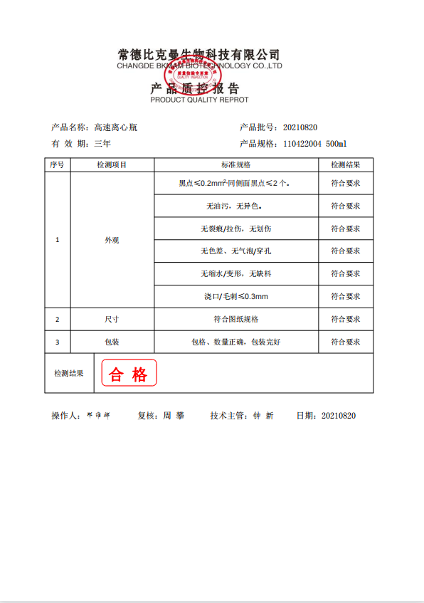 比克曼生物 高速離心瓶 500ml 4支裝 110422004 20210820