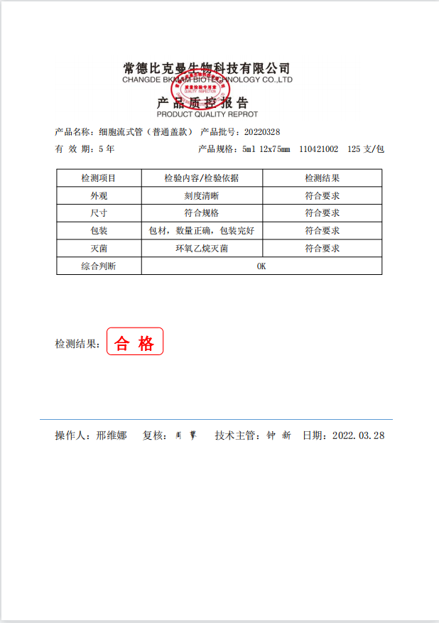 比克曼生物 細(xì)胞流式管(普通蓋款) 5ml 12x75mm 125支袋 110421002 20220328