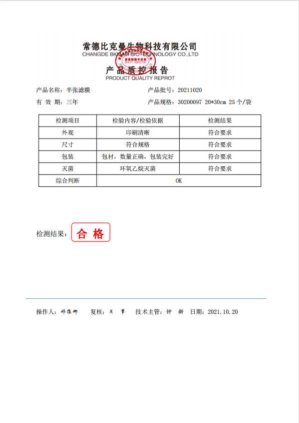半張濾膜 20x30cm 25個裝 30200097 20211020