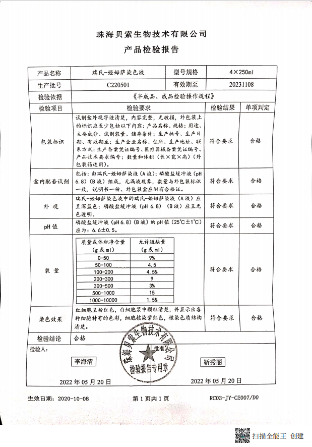 貝索 瑞氏-姬姆薩染色液 250mlx4 C220501