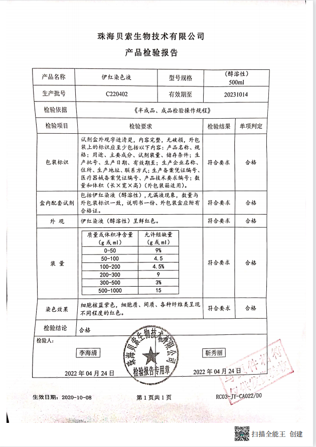 貝索 伊紅染液(醇溶性) 500ml BA4099 C220402
